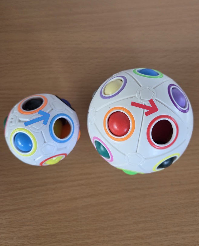A kis labda pont ideális méretű, könnyen kezelhető, mégis elgondolkodtató. A kislányom minden nap előveszi, és már versenyzünk is, ki rakja ki gyorsabban.